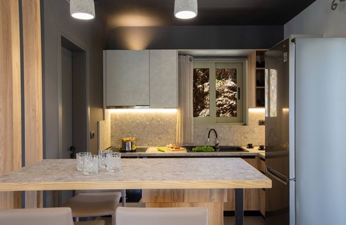 Just a level below, is where the private pool is located along with sunbeds and bean bags, a perfect setting for unwinding. Savour your time in the water and take in the landscape around you as the unique dusk of the Ionian cast its golden hue on the horizon.