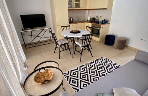 Step inside Villa Evgenia to discover a haven of comfort and style. The villa boasts two tastefully appointed bedrooms, ensuring a peaceful night's rest for all guests. A well-equipped kitchen with a fridge and an oven offers the convenience of preparing delicious meals, while the inviting seating area provides a cozy space for relaxation.
