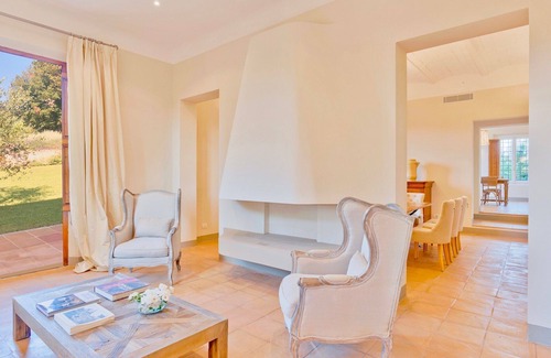 This elegant Villa is tucked away in the Florentine Chianti hills only thirty minutes drive from Florence. The five Bedrooms villa, full of natural light, has been recently renovated to the highest of standards and with contemporary classic chic interiors. The layout of the villa has been designed to perfection: an impressive front terrace leads up to the double doored entrance which opens up into a spacious light filled stairwell and original stone staircase. The ground floor and principal living area intuitively flow from one space to the next: an impressive double lounge sitting room with fireplace leads to a separate dining room and wonderful huge gourmet kitchen with travertine benches and island and a second casual dining area.