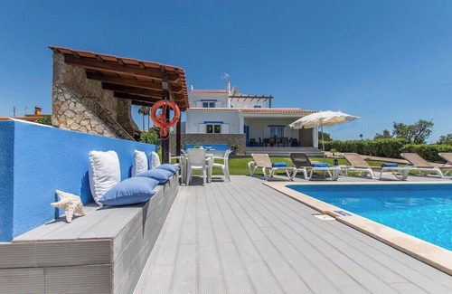 Having many prestigious golf courses on your doorstep is certainly one reason for booking a stay at this enticing holiday home. But there is an array of equally alluring leisure enticing facilities to experiment too.Villa Juliana is a traditional Portuguese holiday villa, washed-white and blue painted - according to legend the blue frame is to attract happiness - That fits it perfectly!The garden, lined with manicured greenery, is an oasis of calm, and the swimming pool adds freshness and fun.The unfussy interiors combine a timeless charm with contemporary comfort for the guest’s delight, taking chilling to another level.Cozy bedrooms complete with bright bedding and cheerful adornments, complete the holiday look.Located between the lively towns of Albufeira and Quarteira, where there are plenty choices for dining and going out – if you can tear yourself away from this appealing spot.Ground floor:Fully equipped kitchenLiving and dining room in open space, AC1 suite with double bed 1.50 m x 2.00 m, bathroom with walk-in shower, AC1 bedroom with twin beds 0.90 m x 2.00 m,that can be prepared as double, AC1 bathroom with walk-in shower1st floor:1 suite with double bed 1.50 m x 2.00 m, bathroom with walk-in shower, AC1 suite with twin beds 0.90 m x 2.00 m, bathroom with bathtub with shower, ACOutside:Private heatable and fenced swimming pool: 10 m x 5 m x 1.10 m - 2.10 mShowerGardenDining areaBrick-built BBQ10 sun beds and 4 parasolsPrivate parkingDistances:These are private or public areas that do not form part of the property. Each has its own schedules and regulations, which must be confirmed with the relevant administration.Praia da Falésia beach: 5 kmPraia dos Tomates beach: 7 kmRestaurant: 1 kmSupermarket: 1 kmShops: 1 kmNightclub: 180 mGolf Courses: Victória 3 km; Laguna 3 km; Old Course 6 km; Pinhal 7 km; Millenium 3 kmWater Park Aquashow: 10 kmMarina Vilamoura: 7.5 kmVilamoura: 7 kmAlbufeira: 11 kmQuarteira: 9 kmArmação de Pera: 26 kmFaro Airport: 25 kmSecurity deposit: 700€Wi-Fi: includedEnd-of-stay cleaning: includedPool/beach towels: includedAC cold or hot: includedPool heating optional: 40€ per nightPrices for up to 8 occupants2 extra foldable beds for the 9th and 10th children/teenagers: 25€ per person per nightPreferred changeover day: Sunday in July & AugustEarliest arrival time: 16:00Latest departure time: 10:00Yoga lessons and babysitting: upon request for a feeThere is a nightclub 180 m from the villa, so there might be noise from the end of Jul to the end of Aug.The video was made before the renovation of the villa.Please note that during your stay, maintenance services may be carried out in the external areas of the Villa, pool & garden, to preserve quality and keep the space in perfect condition.