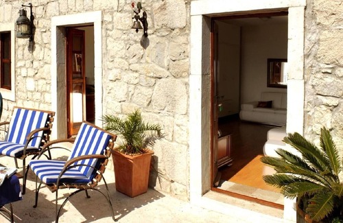 Newly renovated fully enclosed traditional Dalmatian stone villa overlooking the village church in the valley, with a spacious panoramic sea and mountain view terrace