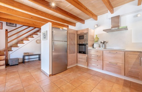 Villa La Sorteta De Cuxach is situated in a quiet, idyllic location near the centre of the town Pollença, which is famous for its historical monuments, as well as its surrounding fields and natural beauty. The charming holiday home has a Majorcan flair and a cosy living room, a very well-equipped kitchen, 3 bedrooms and 2 bathrooms. The 2-storey country house is equipped with Wi-Fi, air conditioning, satellite TV, a baby bed and a high chair. The highlight of the accommodation is the fantastic outdoor area, which is equipped with a veranda with lounge furniture and a sun terrace. From there you reach a lawn with a pool and sun loungers, where you can relax and unwind, surrounded by a beautifully-landscaped garden and the mountain panorama on the horizon. The covered barbecue area with an additional outdoor kitchen provides for further culinary experiences. A supermarket is 1 km away and the nearest restaurant with local specialities is 450 m or a 6-minute walk from the property. Those who long for a dreamlike, sandy beach will find it in Port de Pollença, only 6 km and an 8-minute drive from the accommodation.