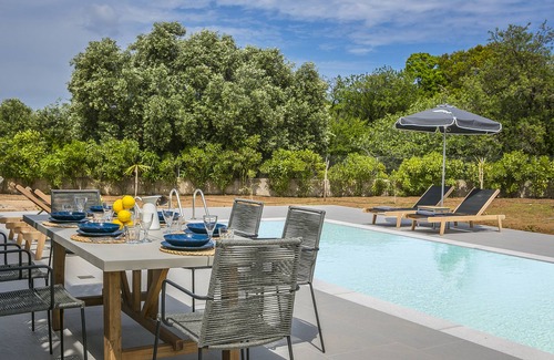 Both villa and pool area are surrounded by lovely mature gardens, lush greenery and trees that guarantee a peaceful and pleasant stay.