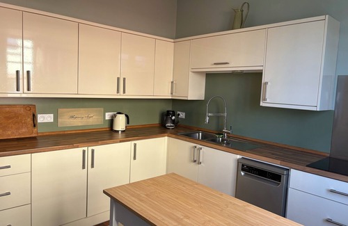 The kitchen is equipped with an oven, a stovetop, and a refrigerator, as well as a coffee maker, an electric kettle, and a microwave. Connect to the free WiFi, or get cozy in front of the TV. Other amenities at this 2-bedroom, 1.5-bathroom rental include a fireplace, bed sheets, an ironing board, and heating.