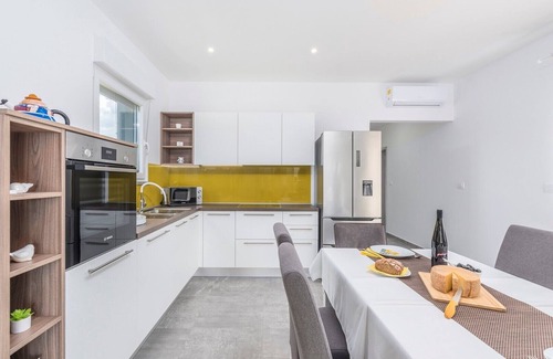 Spend a relaxing holiday with your family or friends in this beautiful holiday home surrounded by greenery, located in Barban. The house is located on a green, spacious and fenced plot of 900 m2. The house consists of two double bedrooms, two bathrooms with shower, a large living room, a fully equipped kitchen and a separated WC. The living room has an exit to a covered terrace and swimming pool with deck chairs. There is a seating set for 6 persons on the terrace, where the guests can enjoy in hot summer days in the shade. In the spacious garden, guests can enjoy in a private swimming pool (32m2) and in a BBQ grill. The stylishly furnished and comfortable interior contains everything you will need for a completely comfortable stay. The harmoniously arranged garden invites you to socialize and have fun with your dearest ones, whether you are swimming in the pool or preparing your favorite specialties on the grill, and then enjoy together on the spacious terrace with a glass of fine Istrian wine.