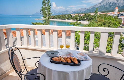 Villa Lux offers three beautiful modern apartments located at the foot of the Biokovo mountain, only 30 m from the Promajna beach, 4 km south of Baška Voda and 6 km north of Makarska. Apartment La Perla is located on the third floor of the house, and can accommodate up to 4 people. This modern apartment consists of a bedroom with a double bed, a bathroom with a shower and a washing machine, a fully equipped kitchen (refrigerator, freezer, microwave, stove, coffee machine), a dining area, and a living room with an air-conditioning unit, a sofa bed for two persons and a flat-screen TV with satellite channels. The guests have a private balcony with dining furniture at their disposal, where they can enjoy a beverage or a nice meal with a breathtaking view of the Adriatic Sea and the Biokovo mountain. The nearest grocery store is only 30 m away, while a restaurant is 100 m away. Welcome to Villa Lux and to Promajna!
