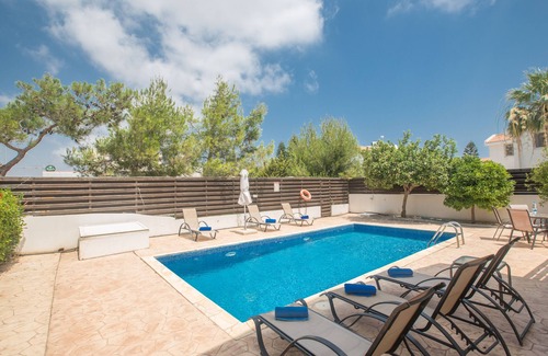 This spacious and comfortable 3 bedroom villa with private pool is located in Protaras, close to the main strip, beaches and amenities. This is an excellent villa option for families and group of friends who want to enjoy all that the area has to offer, whilst staying in a quiet and relaxing location.