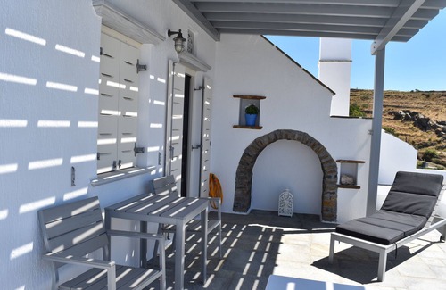 Isa house has 3 bedrooms, 2 bathrooms and can accommodate up to 8 people. Bedrooms are equipped with noise free ceiling fans which are often not necessary since Cyclades Islands and especially Tinos are very cool with light breeze. The house is also equipped with modern mosquito nets installed in all doors and windows allowing you to let the fresh breeze get in the house while keeping insects out.