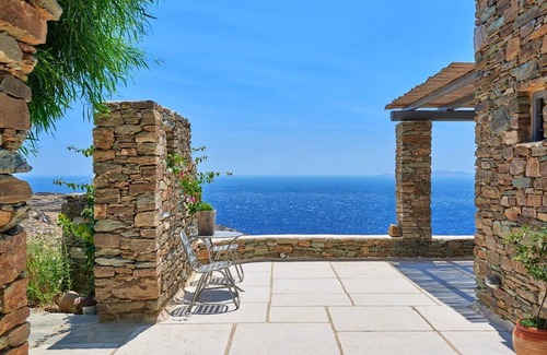 The Melia stone villa with traditional Cycladic architecture offers idyllic memories in a serene and unique environment. Just 4 km from the island's port (called "Chora"), the Aegean Sea stretches as far as the eye can see. You can glimpse up to 15 islands, and the westward position ensures an unforgettable sunset every day during aperitif hour!