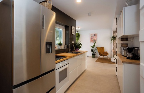 The kitchen is equipped with an oven, a stovetop, and a refrigerator, as well as a coffee maker, an electric kettle, and an ice maker. Bathroom amenities include a hair dryer, towels, and toilet paper. And you can even travel light because you'll have access to laundry facilities. Other amenities at this 5-bedroom, 2.5-bathroom rental include bed sheets, an ironing board, air conditioning, and heating.