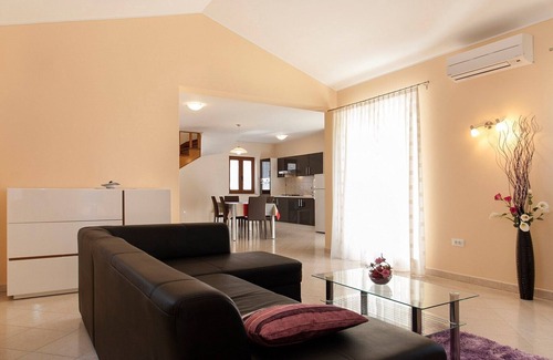 Ideal destination for summer holiday in the countryside and near the sea. Beautiful newly built villa with swimming pool for the family, up to 6 people. The holiday villa Villa Paris, consists of two floors. On the ground floor there is a large, spacious living room with sofa, TV, fireplace, dining table and fully equipped kitchen. There is also a double bedroom and a bathroom. All rooms on the ground floor have access to a large covered terrace with garden furniture overlooking the pool and the beautifully landscaped garden with Mediterranean plants. The garden has an area of 600 m2. On the second floor of the house there are two bedrooms with double beds and a bathroom. One of the rooms has a balcony. The villa is ideal for a relaxing family holiday. All additional costs are included in the cost of the lease, including Wi-Fi, bed linen, towels and car parking.!