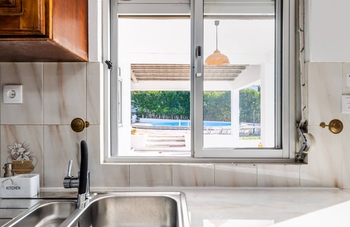 This vacation rental boasts a private outdoor area featuring a pool, garden, open and covered terraces, barbecue, playground, and outdoor shower.