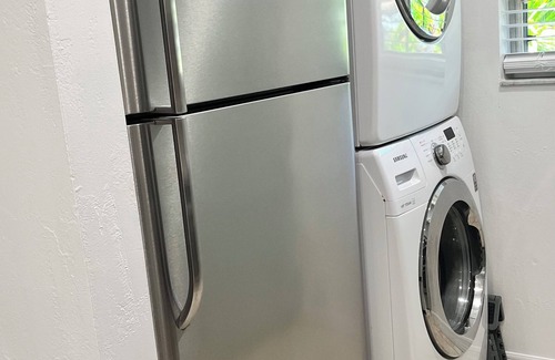 There is a large size washer and dryer in our villa - ironing board and iron, beach towels, and chairs. The pool is moments away and it is glorious. I’m saying that as a person who is not usually fond of pools. it is very lightly used as many of the residents in our community are snowbirds.