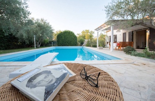 Kitchen and living room open onto a veranda overlooking the pool. The swimming pool is for the exclusive use of the guests.
