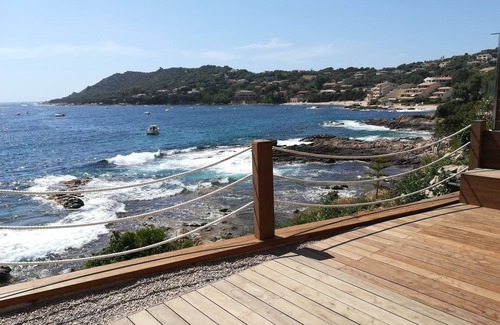 Planned for 6 people and consists of a large living room with a fully equipped kitchen for moments of sharing with ease, a beautiful terrace with breathtaking views of the Gulf. Two bedrooms separated by a bathroom with shower, a master bedroom with dressing room and bathroom with W. C: the little plus bath sea view !!