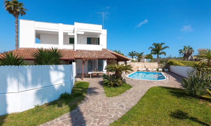 Villa Sunbeach is a lovely villa with swimming pool located in Torre dell`Orso, on the coast of Melendugno. The villa offers up to 16 beds, is surrounded by greenery and is independent, consisting of two units.