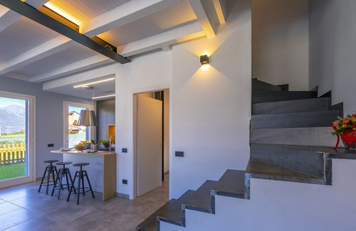 The lake-view property is located in a peaceful residential area surrounded by a green landscape on all sides. There is a pizzeria about a 10-minute walk from here. However, for more restaurants and shops as well as for enjoying the equipped grass beach on Lake Como, it is best to visit the lakefront which is about a 5-minute drive from the rental.