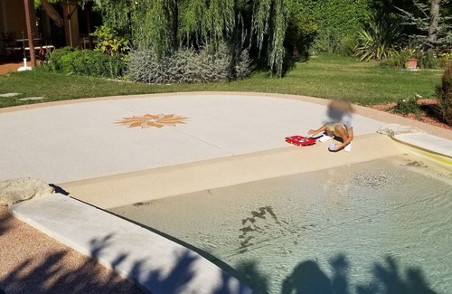Private parking, Electric gate, 12 x 4.5 x Plage® pool. Sloping downhill for more child safety with a 1.20m flat bottom.