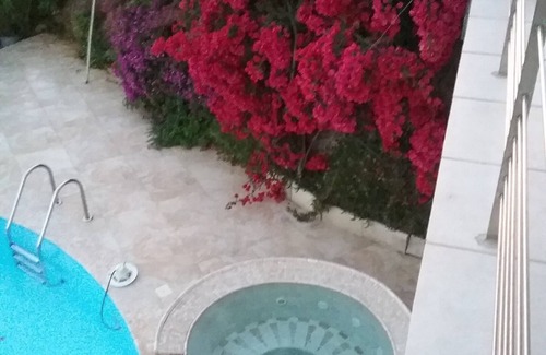 - Large terrace overlooking the pool with a covered area. Has sunbathing.