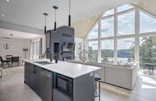 Chalet Moderna is a contemporary residence located in the heart of the the mountains of St-Damien. Offering breathtaking views of the lake and surrounding mountains, our chalet promises you an unforgettable stay.