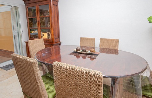 Perfect for families or groups, this three-bedroom, two-bathroom house is nestled along La Duquesa Golf Course in Manilva. Two of the bedrooms offer a view of the swimming pool, while the master bedroom, with its cozy terrace, overlooks the golf course and the sea. The fully equipped kitchen opens into a comfortable living room with a dining area. The sunny terrace and garden are perfect for sunbathing and relaxation.