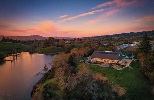 Wander Dry Creek is a stunning Agricultural Farmstay in Sonoma wine country, where modern luxury meets nature. Perched atop rolling vineyards and surrounded by lakes, it’s just five minutes from restaurants in Healdsburg, yet feels like a secluded retreat. Expansive glass doors, high ceilings, and curated details are effortlessly elegant. Lounge by the heated pool, unwind in the cedar hot tub, or sip coffee on the wraparound loggia. A chef’s kitchen, large BBQ with outdoor dining, baby grand piano, and plush bedding ensure a stay of pure indulgence, while Starlink wifi keeps you connected with ease. Wander Dry Creek is home to a thriving bee farm and stonefruit orchard. Join a “hive dive” with the on-site beekeeper, explore the pollinator-friendly gardens, or gather around the firepit. Guests can bottle honey, take a workshop, and connect with the land’s agricultural heritage. Sustainability is at the heart of the experience, with solar power and EV charging. Whether you’re relaxing or exploring, this retreat offers the perfect blend of luxury, sustainability, and a deep appreciation for a celebrated agricultural region.