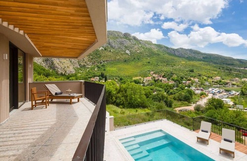 The villa is one of the most delightful high-end luxury residences in the Dubrovnik area. Settled in a placid location in Rijeka Dubrovačka, only 22 kilometers from the airport and 6 kilometers from the Old Town, this brand new five-star luxurious villa in Dubrovnik with a pool provides the perfect holiday rental experience. Modernly equipped and elegantly furnished, the entire property offers nice views, supreme comfort and complete privacy.
