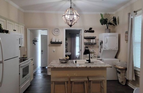 Newly renovated vintage chic town home, that is sure to make any stay comfy and cozy. 1 bedroom with a queen size bed with ample amounts of storage space, a closet, and a safe to store your personal belongings. the living room offers a full size pull out sofa bed and a Indoor hammock chair (350 lb wt limit) that you can relax in after a long day. Two smart tvs with high speed internet and streaming services available. Year round electric fireplace in livingroom and bedroom.