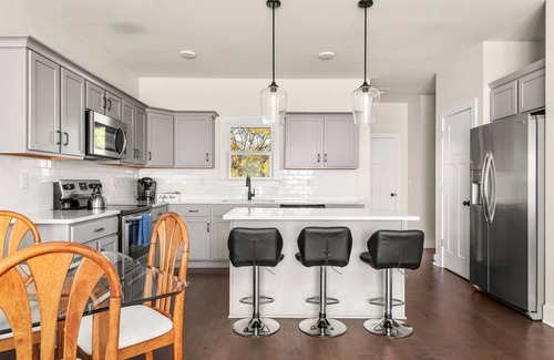 Stay productive and energized throughout your stay at our townhome's first floor, designed to cater to your every need. Our dedicated work area features a comfortable desk and high-speed Wi-Fi, creating an ideal atmosphere for remote work. Your ultimate staycation awaits!