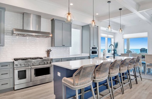 Ready for an upscale twist on a classic beach vacation? Head to Viviana #11 in Perdido Key, Florida for luxury fun in the sun. Directly on the beach, this newly built five-bedroom, five-and-a-half-bathroom home can accommodate 14 guests and features a private pool.
