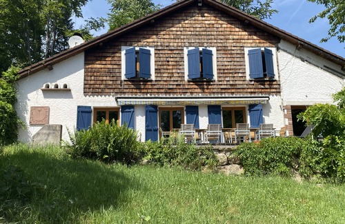 Vosges House 400m2 of character set in a green setting is located in Saint-Nabord. Vosges House 400m2 of character set in a green setting provides accommodation, featuring TV, View, Fireplace/Heating, among other amenities. This Villa features TV, View, Fireplace/Heating, to make your stay a comfortable one.