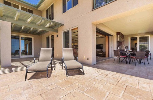 This private, ground-level, oceanview residence offers a great room with sliding glass pocket doors for indoor/outdoor island living, a chefs' kitchen outfitted with Sub-Zero, Fisher & Paykel and Wolf appliances/gas range and dual master suites. Additional features include air conditioning and ceiling fans, washer/dryer, a furnished, wrap around lanai with Wolf outdoor kitchen (BBQ, refrigerator) and one-car garage. This residence is about 1 mile from the ocean. Guests will enjoy sweeping ocean, golf and mountain views, resort charging privileges and access to Hale Ikena Recreation Center, which is walking distance from this residence.