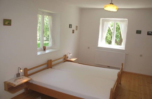 Rustic rustic chalet "Waldweber", 700 m a.s.l from the 18th century, surrounded by trees and meadows. 7 km from the centre of Schwanberg, 25 km from the centre of Stainz, 50 km from the centre of Graz, in a secluded position on a slope, in the countryside. Private: large garden 2'000 m2 (not fenced) with trees, meadow, orchard. Fireplace. Bread roll service. Parking on the premises. Carport. Supermarket 7 km, restaurant 5 km, bus stop "Deutschlandsberg" 5 km, outdoor swimming pool 7 km. Golf course (18 hole) 15 km. Nearby attractions: Schloss Schwanberg 8 km, Schloss Hollenegg 9 km. Please note: 1st floor is closed and not occupied.