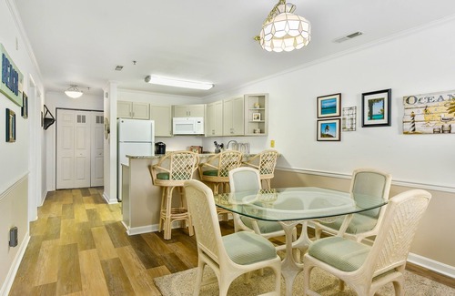 This two-bedroom, corner condo was thoughtfully updated between 2018 and 2021, offering new LVP flooring, kitchen cabinets, granite countertops, appliances, and HVAC. Whether you choose to spend your days walking to the beach or playing mini-golf, you'll be greeted upon your return by two outdoor swimming pools and a kiddie pool to help you make the most of summer days on the shore.