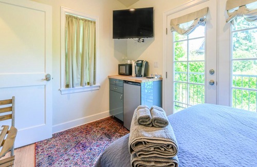 Your spacious suite boasts private keypad entry and a roomy layout showcasing strong natural lighting and lovely outside views. A handy kitchenette comes equipped with a mini fridge, microwave, and Keurig coffee maker for added home convenience. The studio also has a SmartTV with an Amazon Fire Stick for streaming entertainment from all your favorite apps and an independent air-conditioner to keep you comfortable any time of year. There is also a shared porch and a terraced yard to enjoy with your friends.