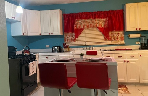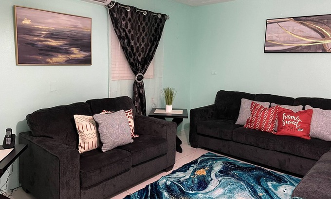 This house in Imperial Park (east) is absolutely lovely! It offers 3 spacious bedrooms and 2 bathrooms, making it perfect for a comfortable stay. You'll find a fully equipped kitchen and a laundry room, providing all the convenience you need. Stay connected with WiFi and enjoy the Smart TVs with Netflix, Prime Video, Nord VPN, and Flow TV. The master suite features a king bed, adding a touch of luxury to your stay. With the ability to accommodate up to 10 people, it's great for larger groups. Self check-in is available, and parking is provided on the premises. Don't forget the large backyard, perfect for relaxation or outdoor activities. The nightly rate is $350, with weekly and monthly rates available at $1,800 and $6,000 respectively. To book, please contact Shenique at 376-3940. Remember to bring your ID for all bookings. Enjoy your stay!