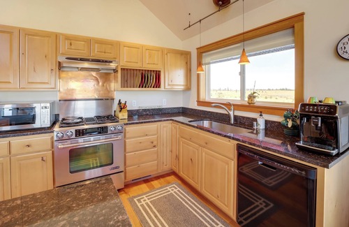 Plan your next family reunion in Washington’s wild northern lands with a stay at this stunning 4-bedroom, 2.5-bathroom Brewster vacation rental! With sweeping views of the rivers, valleys, and mountains beyond, this home offers a true escape from the everyday bustle. Spend your days watching movies in the entertainment loft, sipping wine on the deck, or baking in the chef’s kitchen. Be sure and leave time to explore the surrounding Cascades before returning home for a soak in the hot tub!
