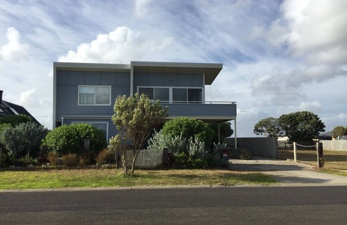 Our house at Peterborough is a modern take on a 1960s beach house, set over 3 levels. The house features an eclectic choice of both modern and retro furnishings. Enjoy relaxing in front of the wood fire, in the upstairs loungeroom while overlooking the Southern Ocean. Alternatively relax on the north facing rear deck, or in one of the 2 hammocks with your favourite book. The main bedroom also has ocean views and a spacious ensuite. The third bedroom or bunkroom, has a tri-bunk (with double bed on the bottom and single on top) and 2 regular sets of bunks. The well equipped kitchen features a large 5 burner oven for cooking up a storm. You can chose to dine at the island bench for breakfast or sit at the baltic pine 12 seater dining table, with bench seats set into the corner. The fire pit in the back yard provides a great spot for toasting marshmallows. NO PETS PLEASE.