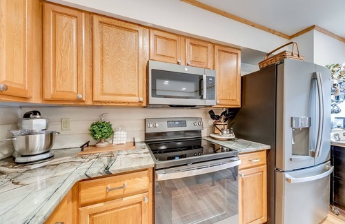 Waterfall Cabin has been beautifully & lovingly decorated. There is a large spacious kitchen, with french door refrigerator, dishwasher and a Keurig Duo coffee maker in a delightful separate coffee station area.