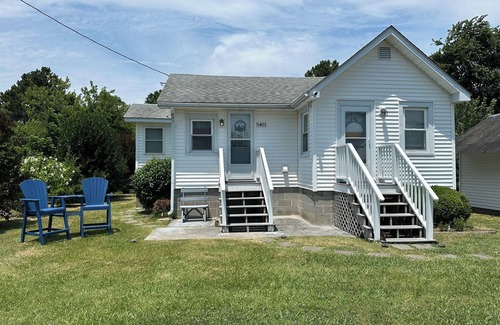 Small family-friendly two bedroom cottage on Chincoteague Island! In a quiet residential area with a slight view of Little Oyster Bay across the street. One mile to Maddox Blvd, and three miles onto Assateague Island. Simple cottage features one queen bedroom assessed via bedroom 2 which is perfect for kids/ teens bunk beds with trundle and living room sleeper sofa. Both bedrooms have doors for privacy.Located in quiet residential area, property is cute & clean, it is a beach cottage not a luxury resort. The view and experience are great and will be enjoyed by couples & families alike! So much to do on Chincoteague from getting back to nature or cruising the island in a golf cart and enjoying many shops and activities. Amenities include very large outside shower, fire pit, outdoor seating, charcoal grill, bikes (waiver required), backyard games and more. Nearby public boat/kayak launch, Fir Landing. Minutes from NASA Wallops Flight Facility. Please reach out with questions. Cottage has Security cameras in front and rear. Contact host for midterm stay deals December through March.