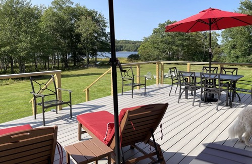 Relax in the sunroom surrounded by the views of Hockomock Bay, the sweeping lawns and the Maine forest. Step out on to the sizable deck to enjoy your coffee as the morning sun peeks through the tall pines while you watch the loon sun themselves on the rocks in the bay. Open the windows and feel the cool shore breezes blow in while you relax in the recliner and read a good book. The large room is perfect for relaxing, meditation, yoga or birdwatching. If the weather is chilly you can light the gas stove, sit around the coffee table and play games while enjoying an incredible sunset.