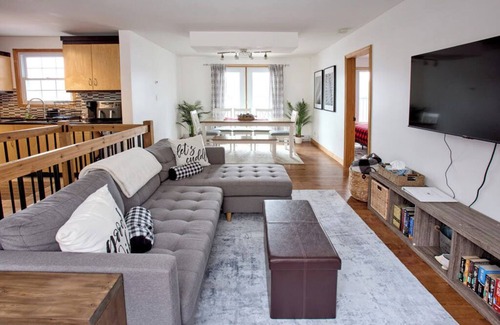 Access the private waterfront directly from the backyard. Please be cautious when entering the water, as the rocks can be VERY slippery. Keep in mind, this is a river and not a lake, so there can be a current. The water is shallow near the shore and fairly easy to navigate, however not suitable for diving.