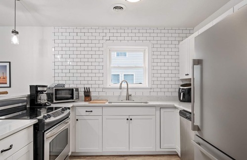Never let the water out of sight at this beautifully renovated waterfront home - all that stands between you and your private boat dock is a sliding glass door! Spend sunny days swimming, crabbing, or launching kayaks and paddleboards off the pier. Bring your boat or rent one and explore the Outer Banks and miles of uninhabited beaches. You’ll also have access to a seasonal community pool and tennis courts. Sip crisp drinks from your furnished patio or elevated deck - both offer serene water views. The light and bright interior showcases wall-to-wall windows. Enjoy a coveted open layout with a sleek full kitchen with stainless steel appliances, subway tile, and a three-seat breakfast bar. Whip up favorite recipes and serve memorable meals at the dining table. Kick back and watch TV in one of two seating areas, or peruse a collection of board games and enjoy a family game night. An outdoor shower and washer/dryer add convenience during your stay. Things to Know