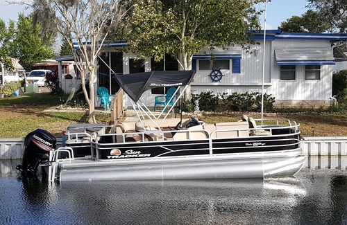 Pontoon Boat fits up to 10 people. Boat is a brand new 2018 SunTracker Fishing Barge comes with a 90hp motor, Trolling motor and Lowrance GPS fish finder great for fishing. Fishing poles and basic tackle are supplied! Local Pontoon rentals go for $275 to $350 for 8 hrs. Our boat is yours for the duration of your stay! There are restaurants you could access by boat. The Historic Dora Canal is just minutes by boat from our place.