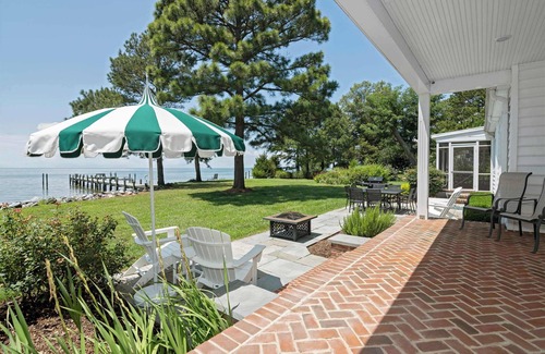 At the end of a quiet road, where trees give way to endless water, you’ll find Overlook Farm — a luxurious waterfront retreat made for connection and calm. The open-concept layout flows from a chef’s kitchen with an oversized island into inviting dining areas indoors and out. Multiple living spaces offer room to gather or spread out, while a game room sparks friendly competition and tucked-away nooks invite a good book. Four serene bedrooms each frame a private view of the water, bringing golden sunrises and gentle evening breezes to your stay. Outside, the private pool, sun loungers, and shaded seating create the perfect setting for long, lingering days on the shore.