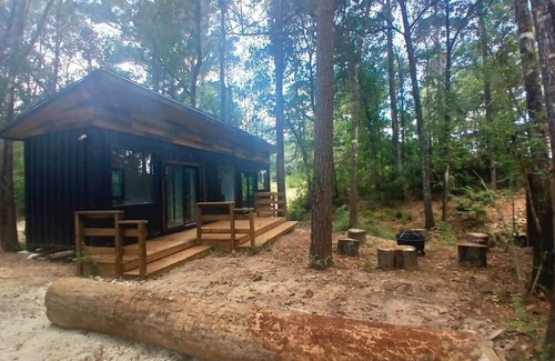 Imagine waking up to the sound of a creek and a waterfall, sipping a fresh cup of coffee on your private deck surrounded by towering oak and pine trees.Spend the day fishing, reading in the hammock, or simply soaking in the peaceful forest vibes when the sun sets end the night with a BBQ and s’mores under the stars 5 minutes to Renaissance Festival Creekside setting with its own waterfall Fishing in the creek Pond + hammock for forest relaxation BBQ grill + fire pit for cozy nights Pet Friendly