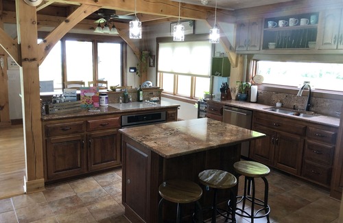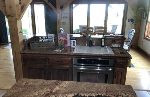 Our 4-story, timber-frame home is a peaceful sanctuary with waterfront access to Green Bay. Perfect for vacations and Packer Games, its 3-bedroom, 3-bathroom, custom-built design features stunning views of the water from every single room. With an open concept, there’s lots of space to cook, gather, and connect indoors.