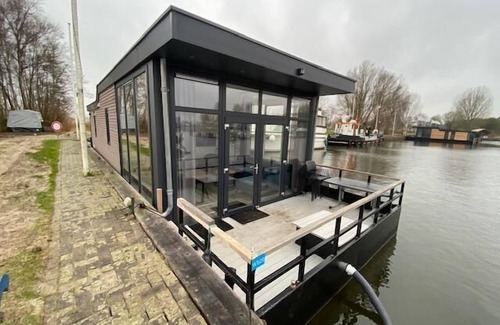 A stay in Waterlodge 6 gives a bit of a 'luxury yacht feeling' with its modern interior and facilities and location on the water. The boat is on one level and suitable for a maximum of 6 persons. In the bright living room you will find a cosy seating area with television, a dining area and an open-plan kitchen with a filter coffee machine, a combi-microwave and a fridge-freezer. In total there are 3 bedrooms, 1 with a double bed and 2 with 2 single beds. The bathroom has a shower and washbasin. The toilet is separate from the shower. Outside you will find a furnished terrace. You can park 1 car near the boat and you have free Wi-Fi at your disposal.