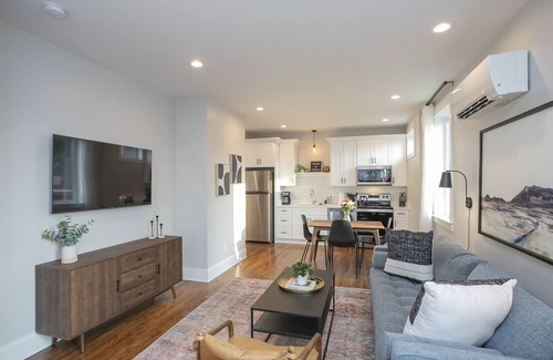 This is one of 4 BRAND NEW townhomes in the heart of the Wedgewood Houston neighborhood; Nashville's hottest new area, bustling with bars, restaurants, breweries, and coffee shops! This 1 BD/2BA townhome includes 3 FLOORS of living space. The home has a fully stocked kitchen, KING SIZE BED, washer/dryer, & PRIVATE ROOFTOP DECK! Free street parking that is readily available in front of the townhome. The townhome is walkable to all of WeHo and only 8 MINS DRIVE TO BROADWAY! Perfect for couples!