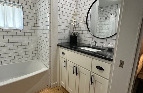 This stunning 1 Bedroom 1.5 Bathroom cottage is the perfect home for a romantic getaway, or a calming retreat. Sleeps two and is fully prepared for your stay, our home has a fully stocked kitchen, spacious living area, tranquil bedroom, and a large patio featuring ample seating, a grill, and hot tub!